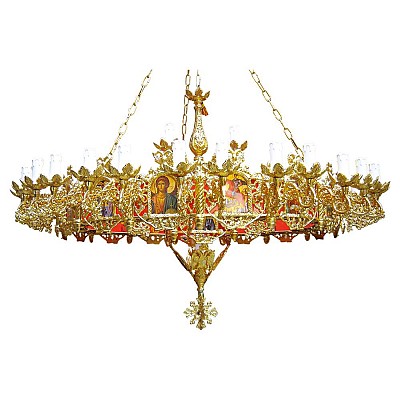 Candelabru- Obiect de cult cu mai multe brate, bogat ornamentat, confectionat din aluminiu, aurit , impodobit cu iconite. Candelabru mare impodobeste naosul bisericii si de obicei in bisericile mai mari se aseaza unul sau doua candelabre mai mici si in pronaos.