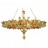 Candelabru din aluminiu aurit cu horos, 43 becuri, dimensiuni 123 cm x 82 cm, greutate 17,3 kg.